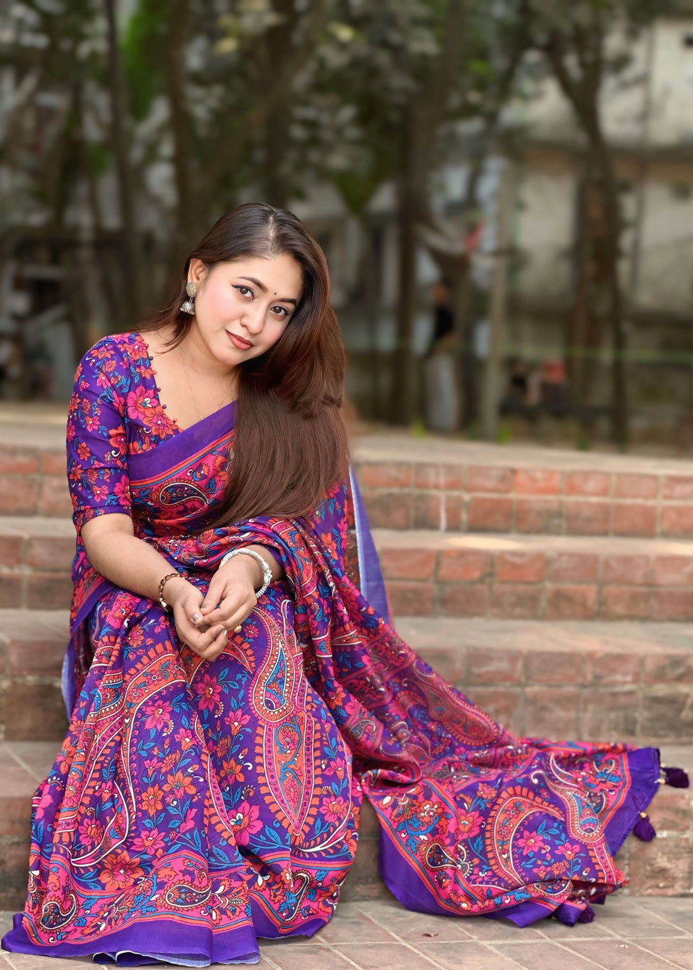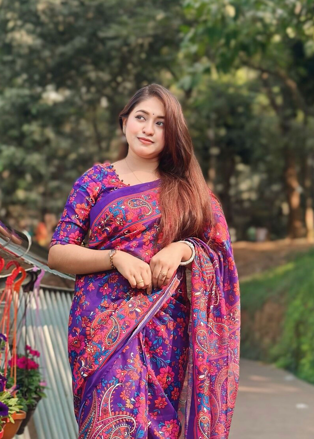 এই ডিজিটাল প্রিন্ট সিল্ক শাড়ি আপনার প্রতিটি বিশেষ মুহূর্তকে করে তুলবে আরও স্মরণীয়।