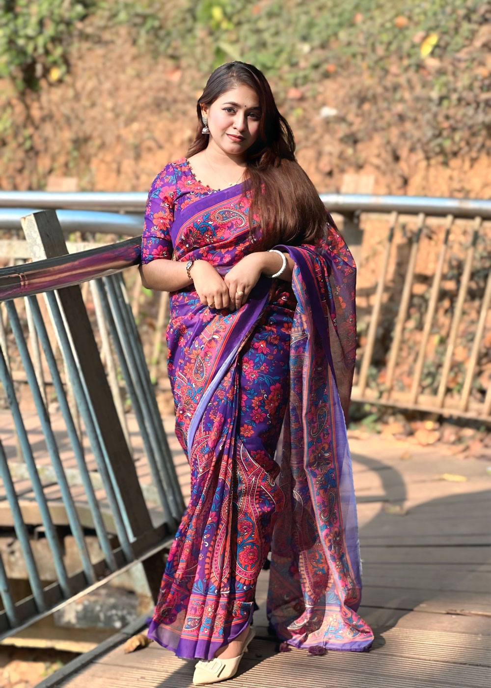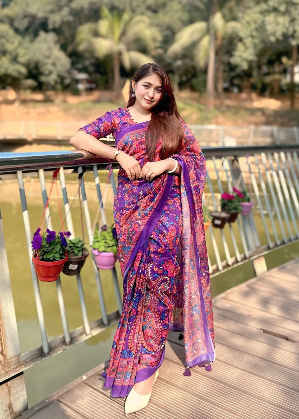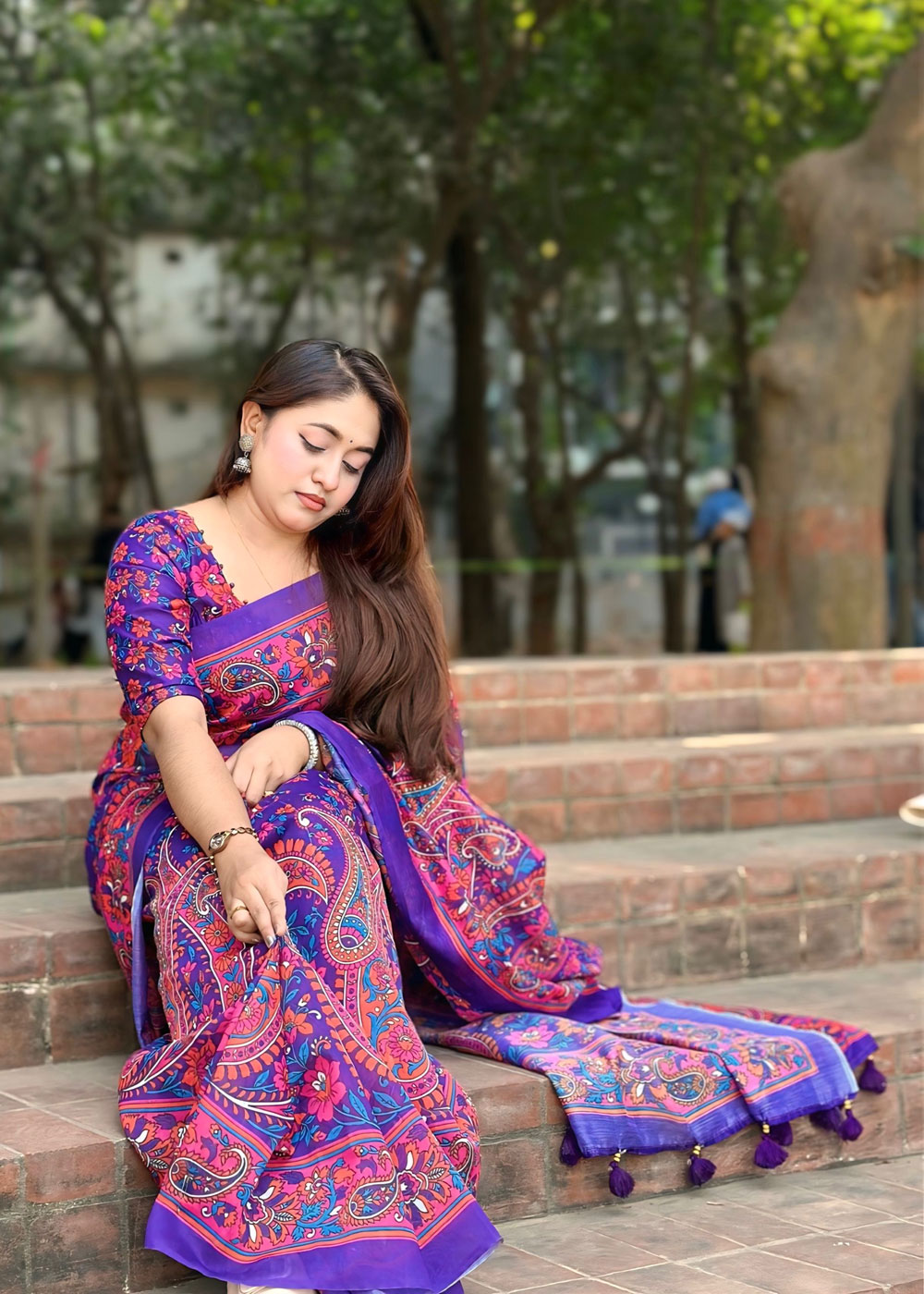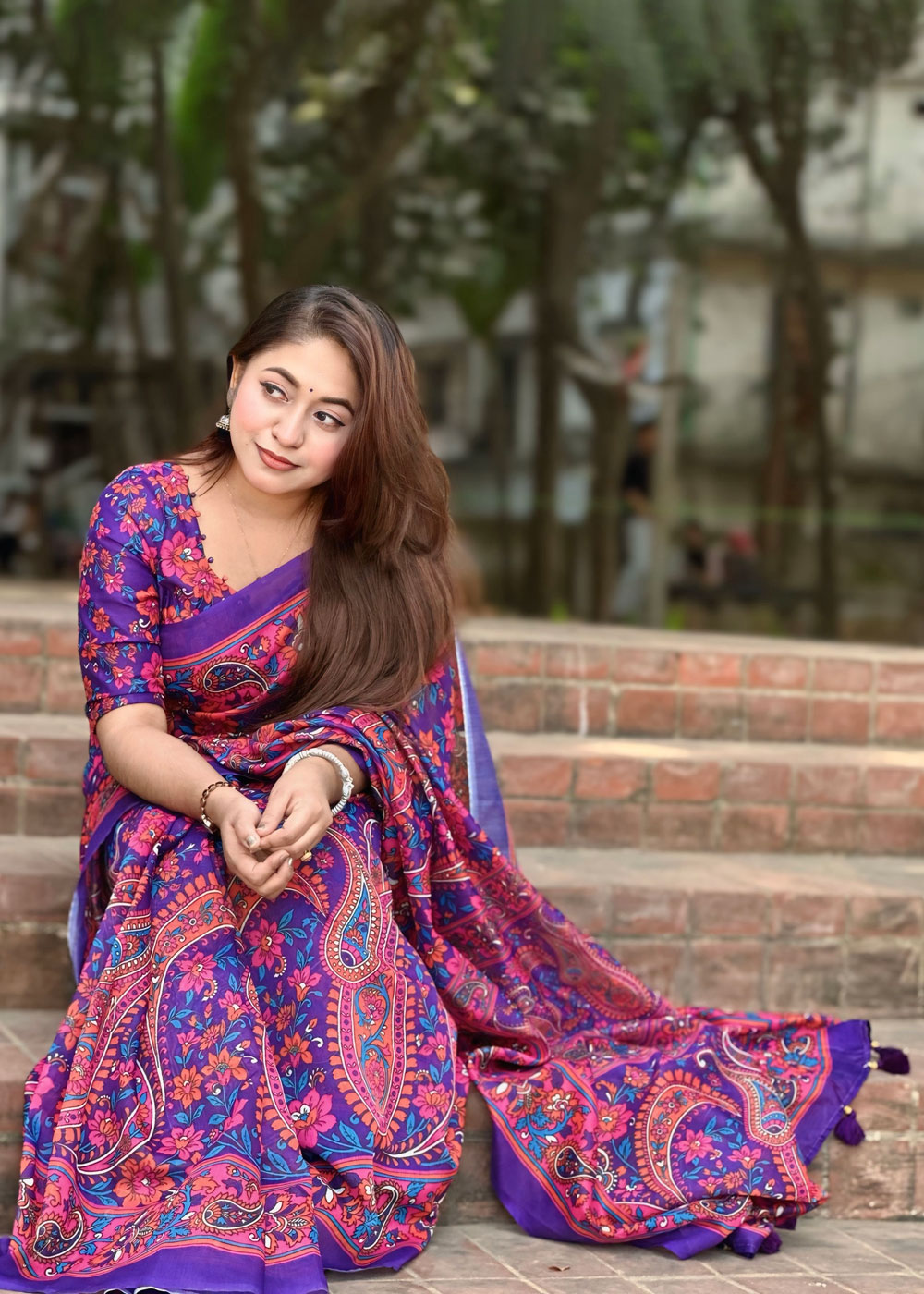 এলিগেন্ট ডিজিটাল প্রিন্ট সিল্ক শাড়ি সাথে মেচিং ব্লাউজ পিস