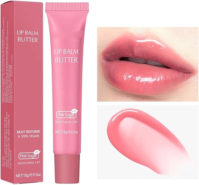 Glossy Lip Butter Balm Pink Suger, Non-Sticky Moisturizing Jelly Tint Stain, Nourishing Lip Care & Repair Lip Mask for Soft, Smooth, Dry Lip Protection