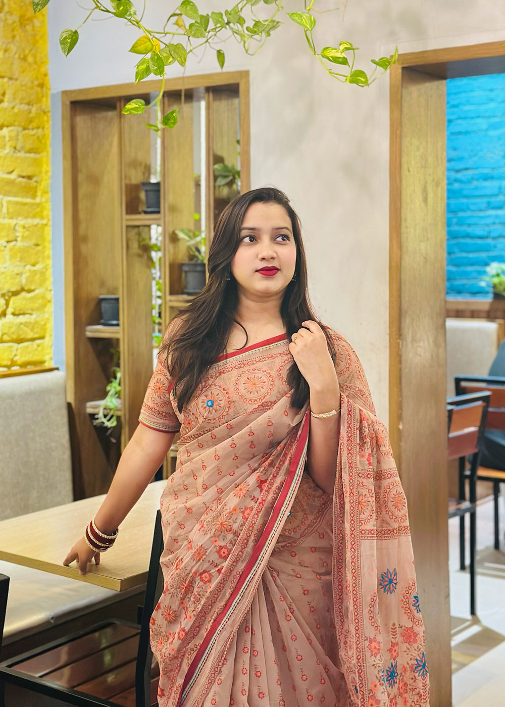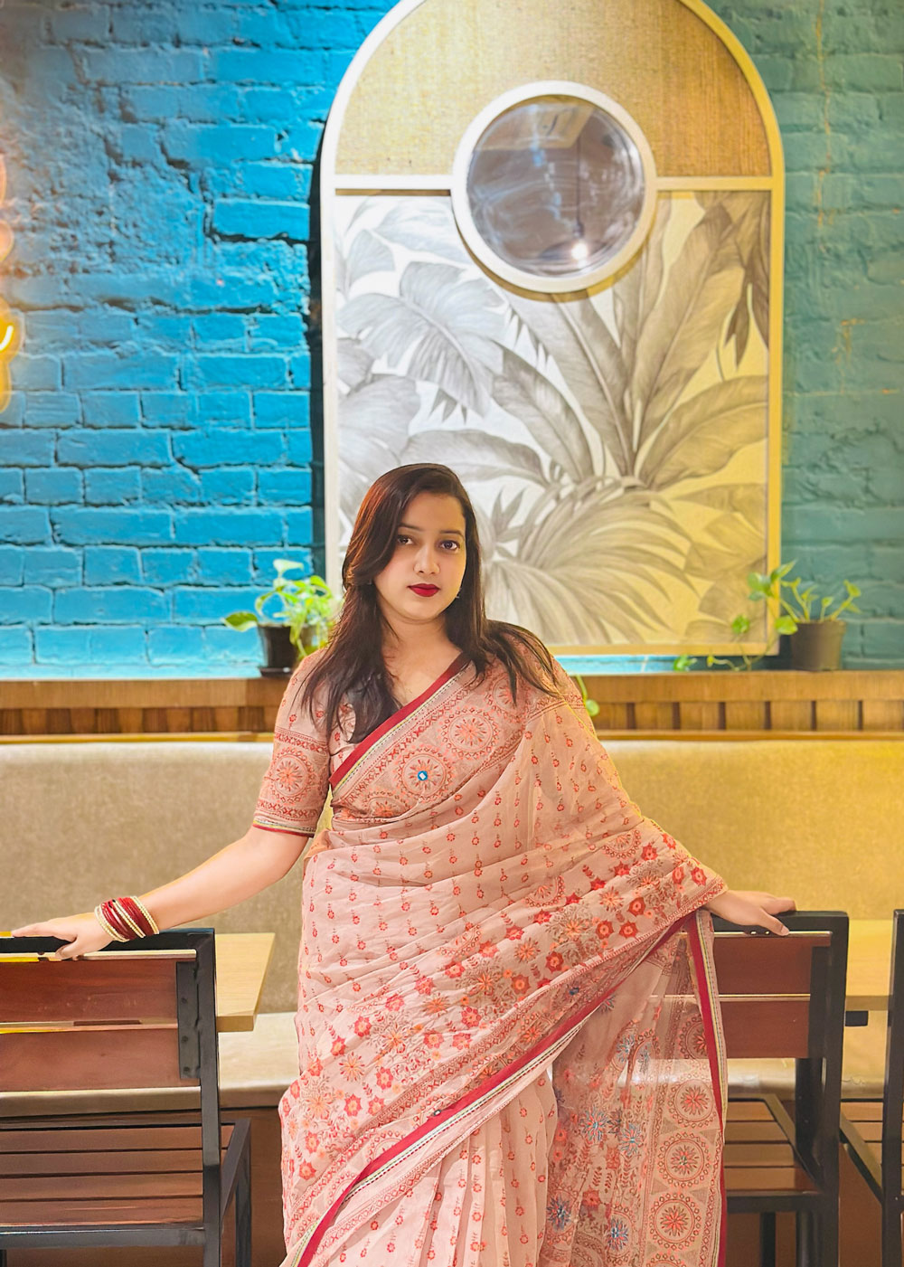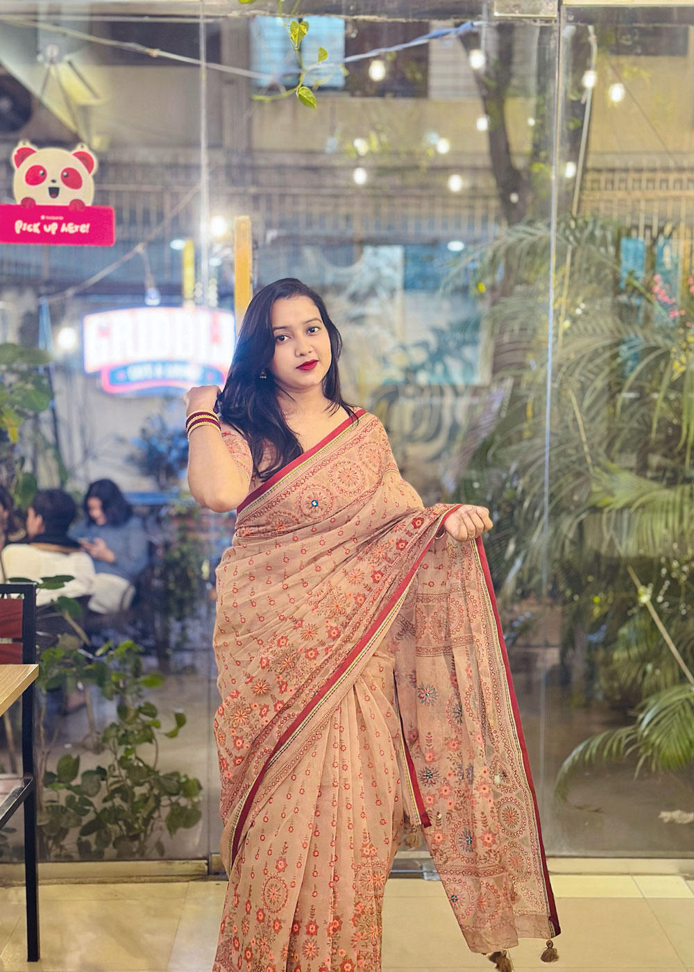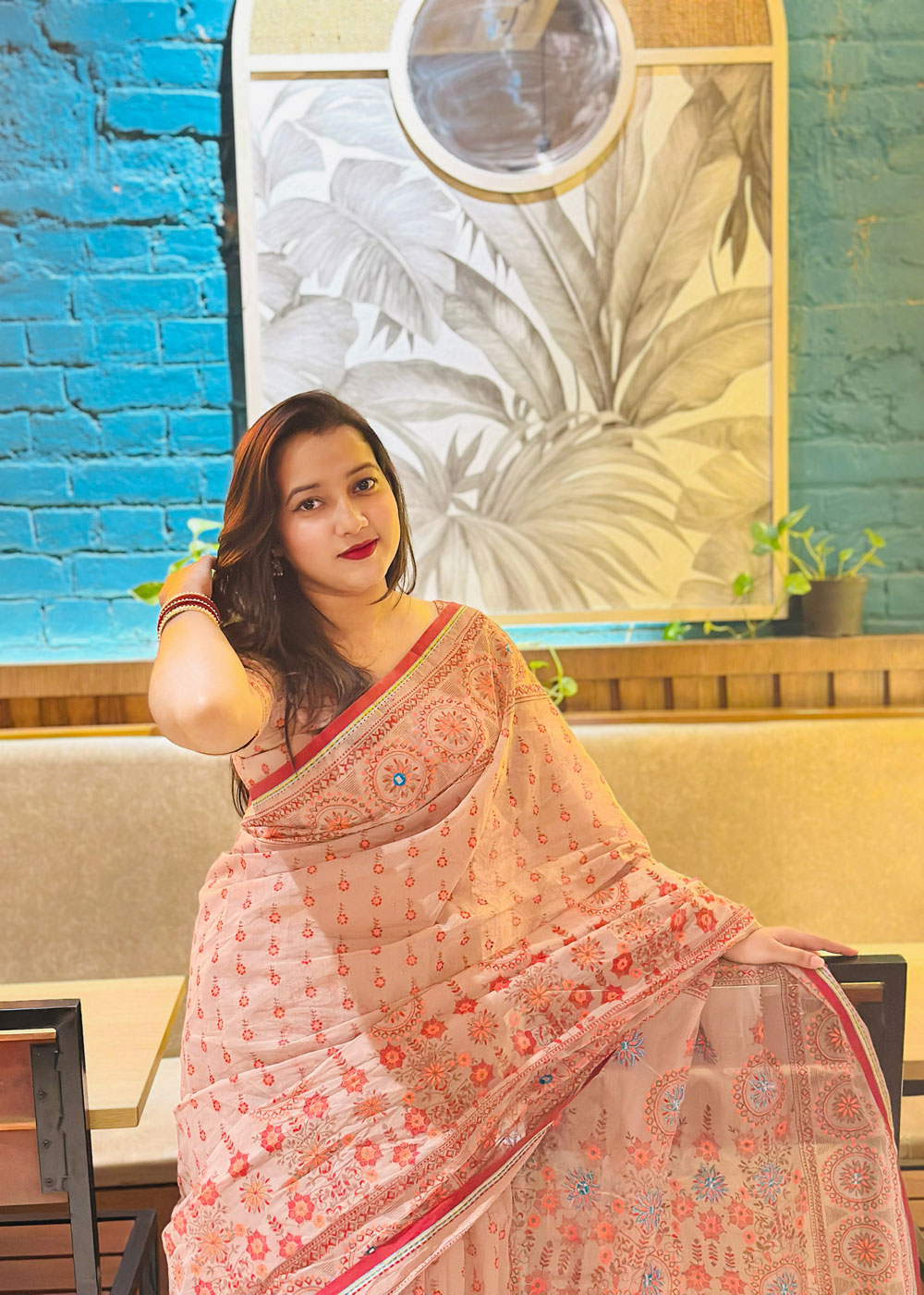 🔸 হাতের কাজের কারুকাজ: পুরো শাড়ি জুড়ে সূক্ষ্ম সুতার ও এম্ব্রয়ডারি ডিজাইন, যা নজর কাড়বেই 💕